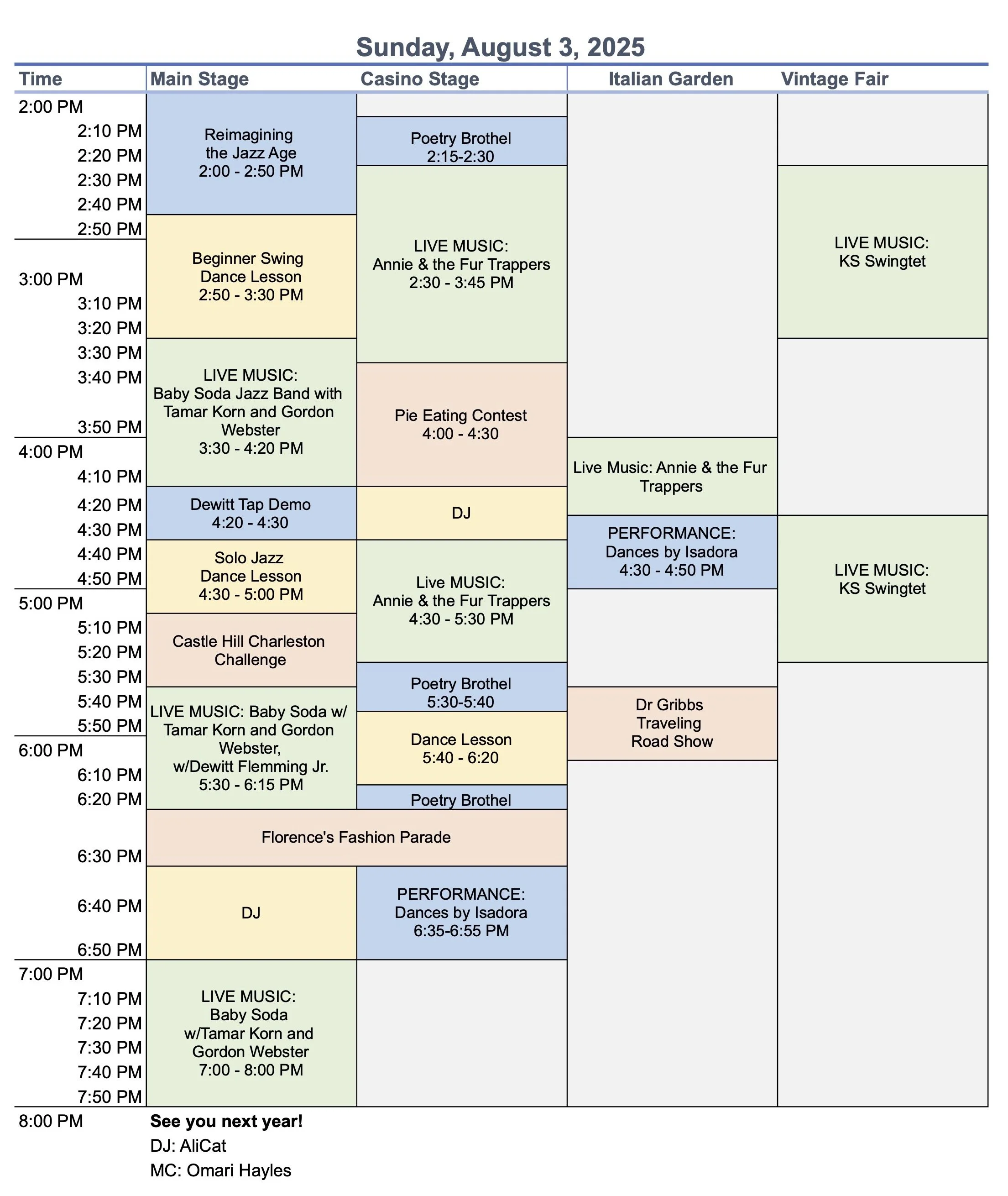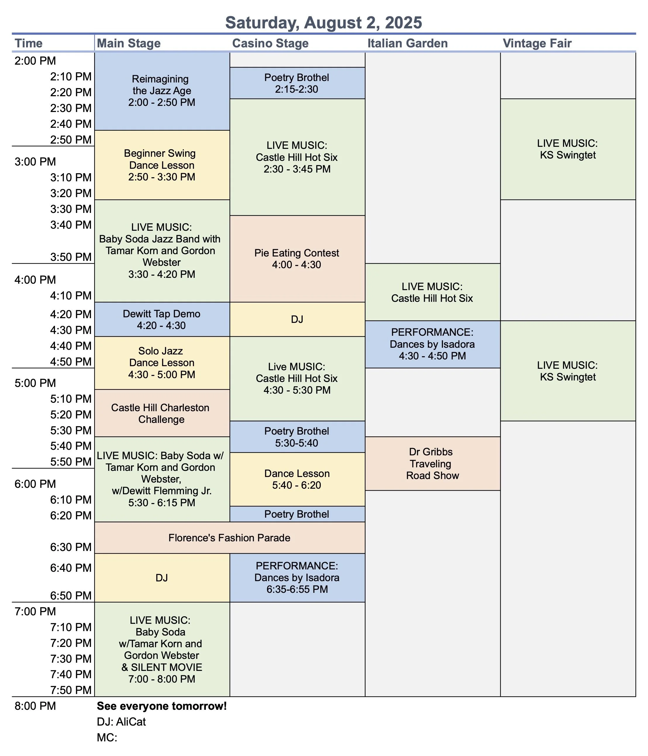 Please note: Saturday and Sunday are very similar programming. Schedule subject to small changes.